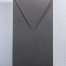 Вертикальный конверт с треугольным клапаном. Хорошо подойдет для карточек «евро» формата (100х210). Качественная, плотная бумага, произведен в Мастерской, в Москве.