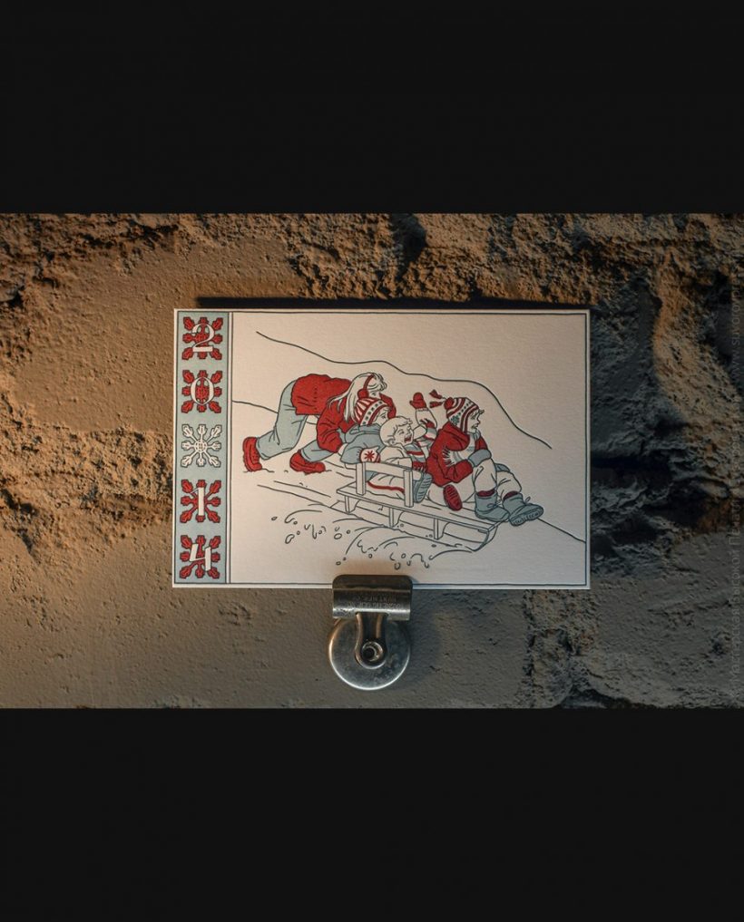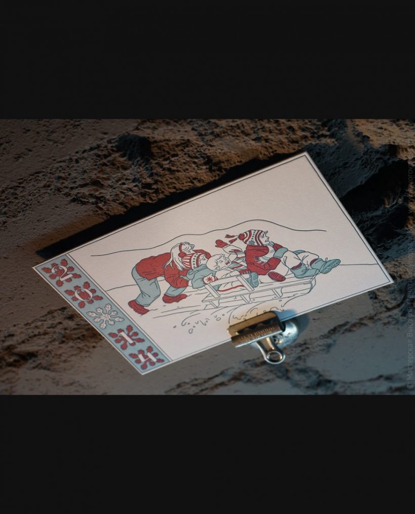 Праздничная, новогодняя открытка на хлопковой бумаге, размер 10х15 см, изготовлена вручную,методом высокой печати, в нашей Мастерской.