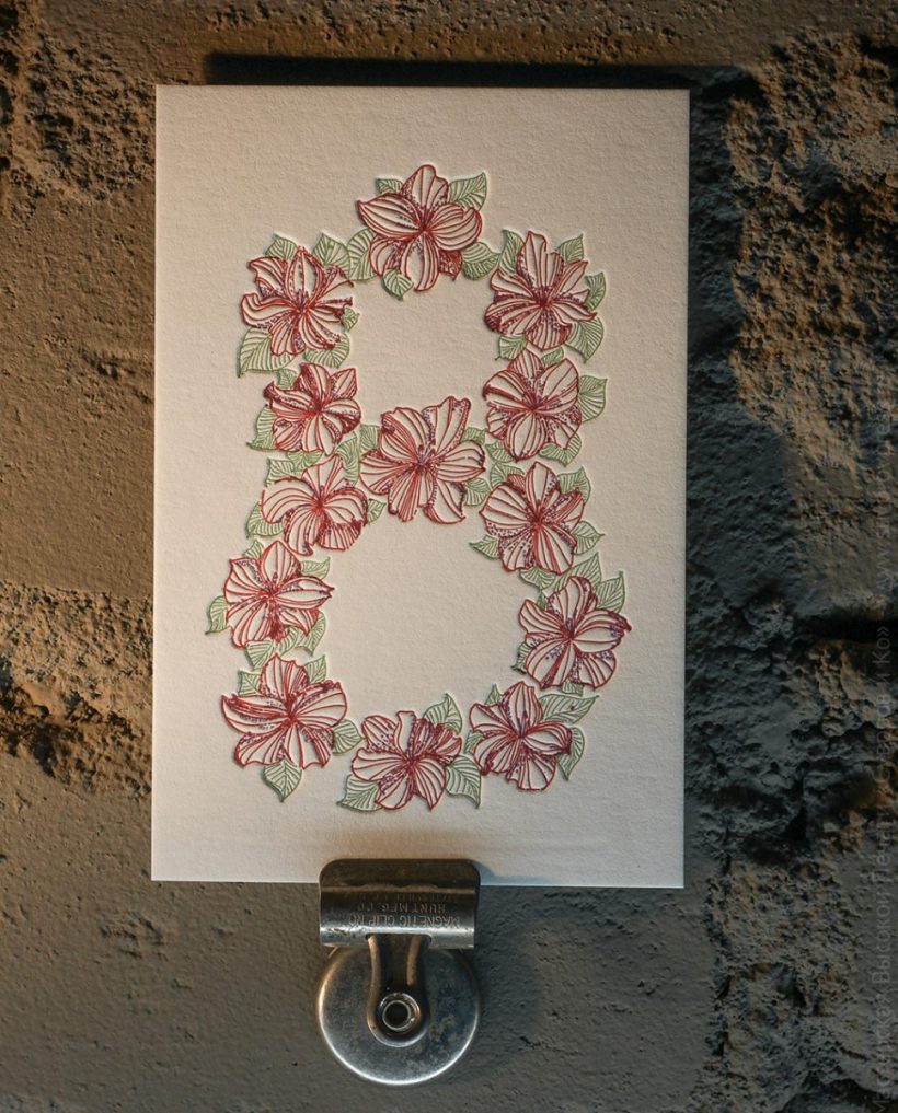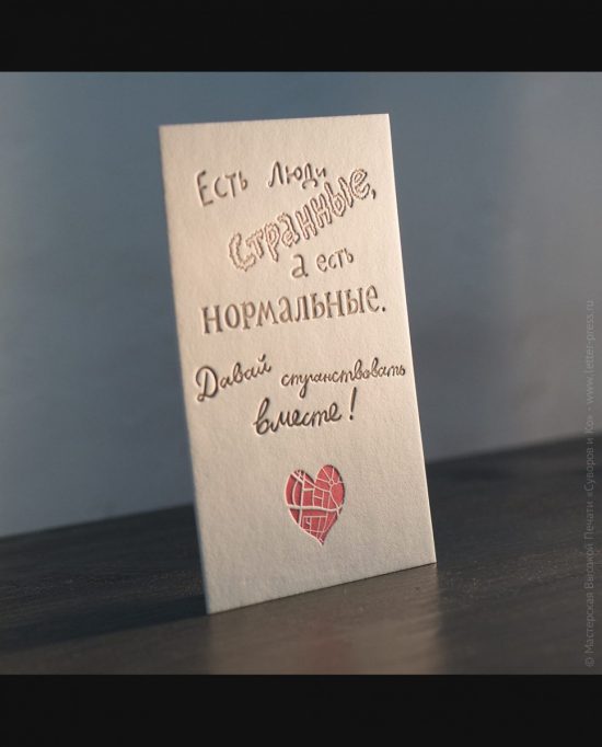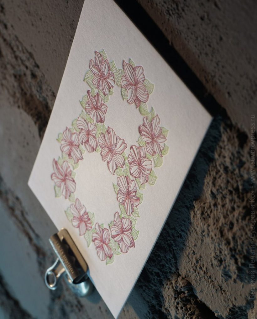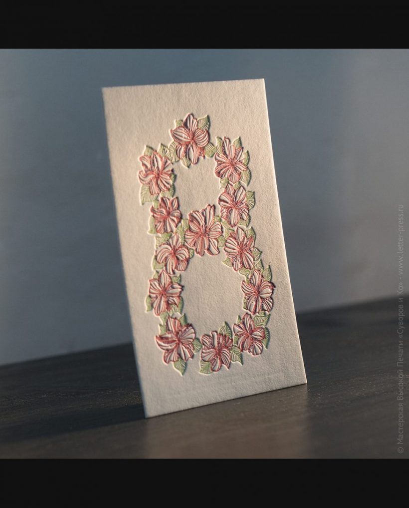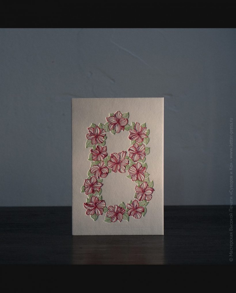 Поздравительная открытка на хлопковой бумаге, размер 10х15 см, изготовлена вручную,методом высокой печати, в нашей Мастерской.