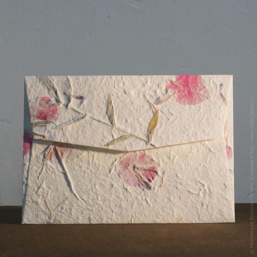 Конверт 17х12 см. Из бумаги ручного литья — розовый