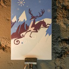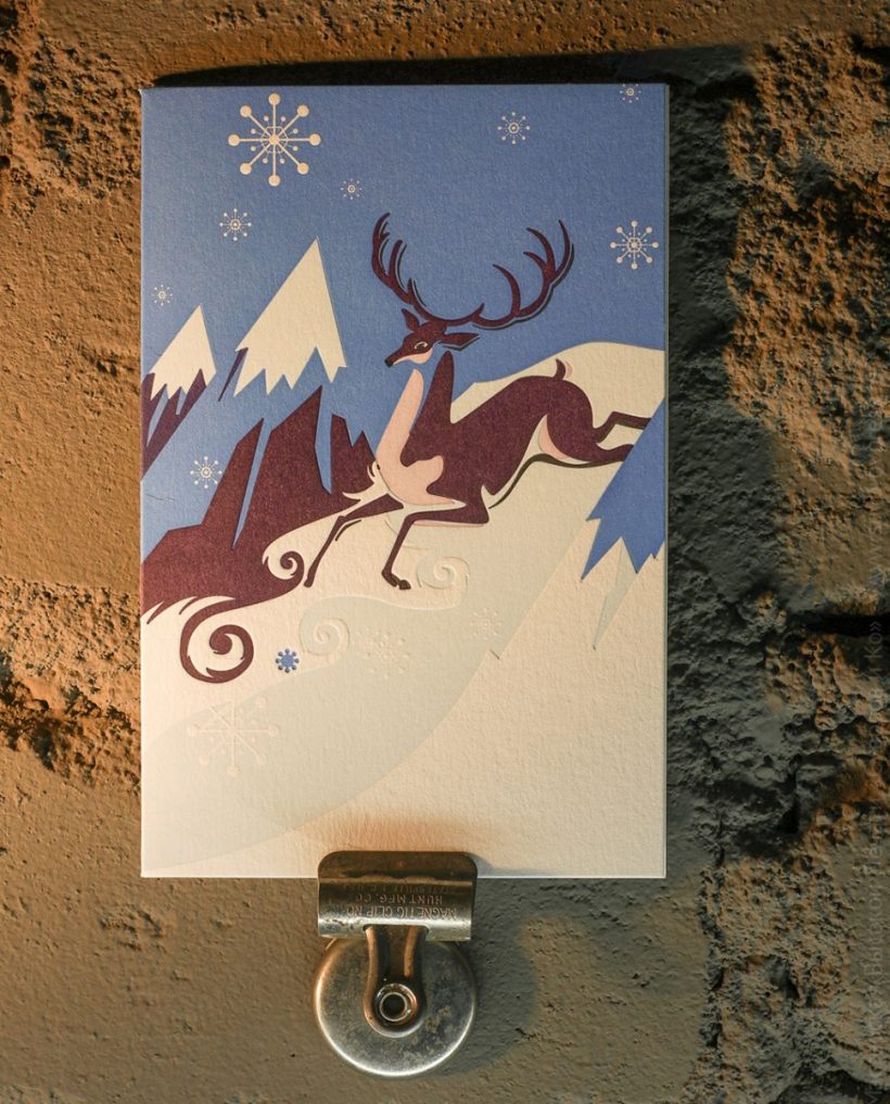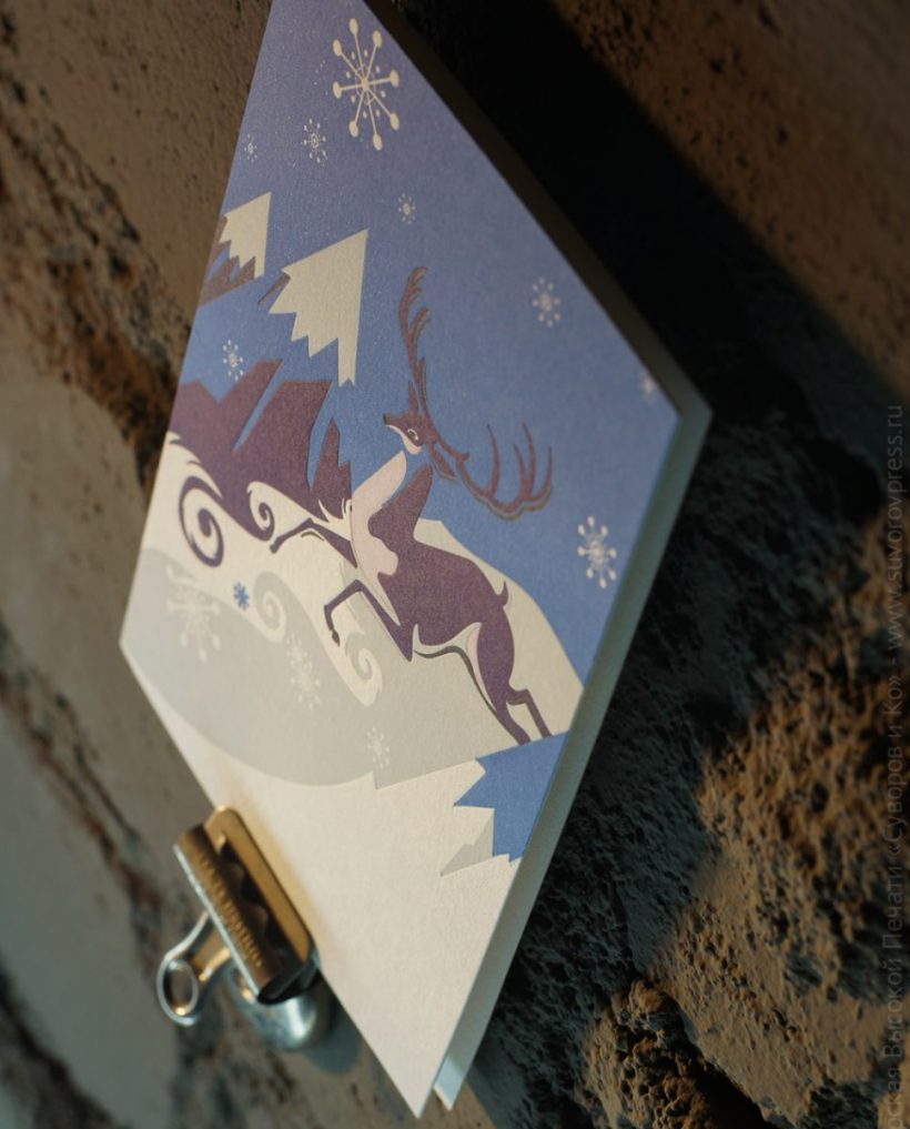 Праздничная, новогодняя открытка на хлопковой бумаге, размер 10х15 см, изготовлена вручную,методом высокой печати, в нашей Мастерской.