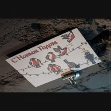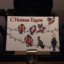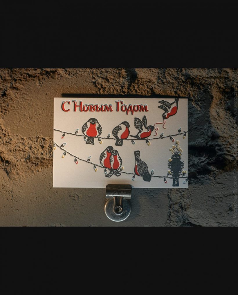 Праздничная, новогодняя открытка на хлопковой бумаге, размер 10х15 см, изготовлена вручную,методом высокой печати, в нашей Мастерской.