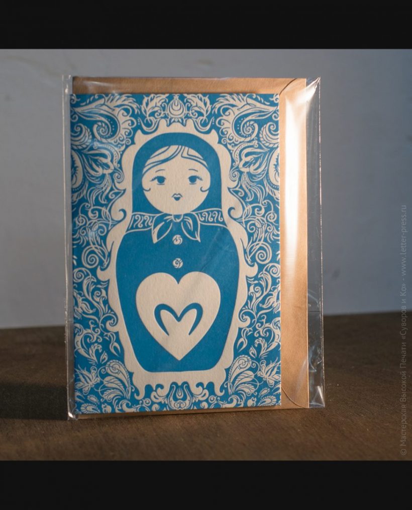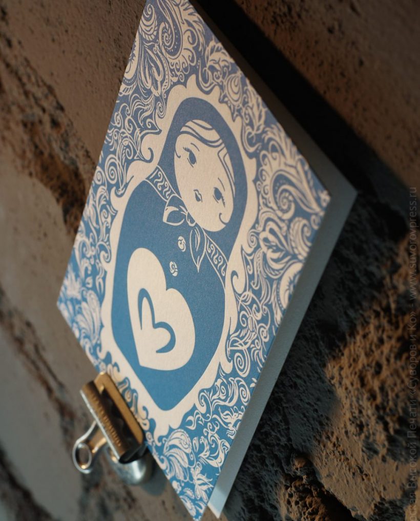 Подарочная открытка на хлопковой бумаге, размер 10х15 см, изготовлена вручную,методом высокой печати, в нашей Мастерской.