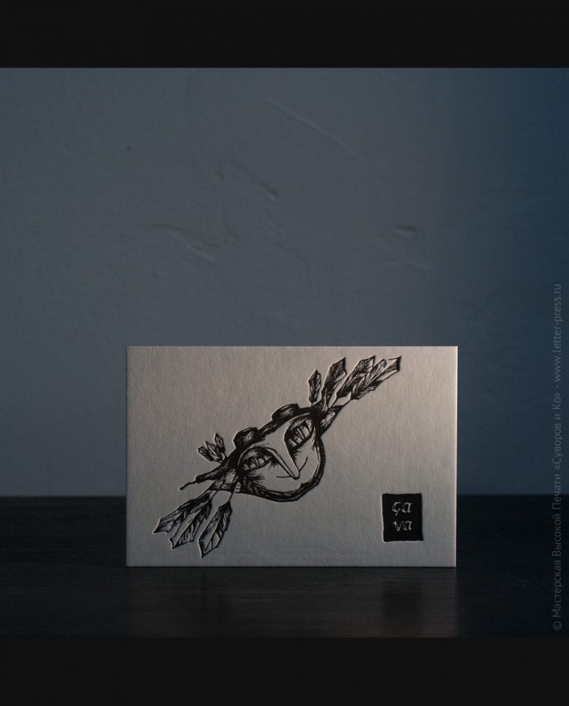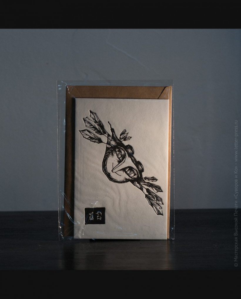 Подарочная открытка на хлопковой бумаге, размер 10х15 см, изготовлена вручную,методом высокой печати, в нашей Мастерской.