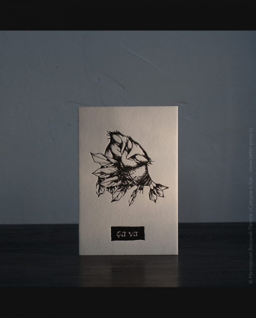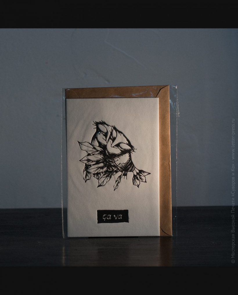 Подарочная открытка на хлопковой бумаге, размер 10х15 см, изготовлена вручную,методом высокой печати, в нашей Мастерской.