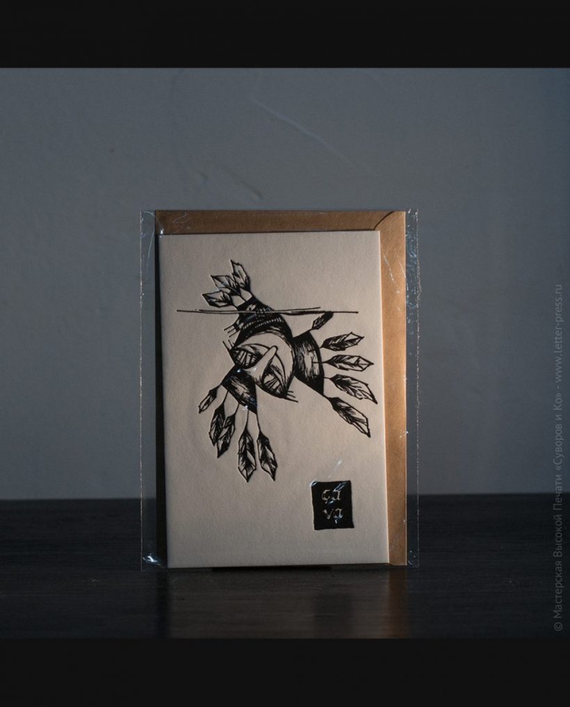 Подарочная открытка на хлопковой бумаге, размер 10х15 см, изготовлена вручную,методом высокой печати, в нашей Мастерской.