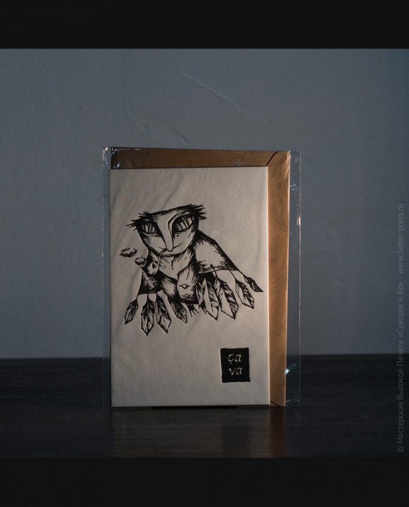 Подарочная открытка на хлопковой бумаге, размер 10х15 см, изготовлена вручную,методом высокой печати, в нашей Мастерской.