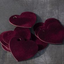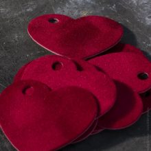 Небольшая бирка для подарка — из плотной бархатной бумаги. Форма сердца недвусмысленно указывает на романтическую привязанность.