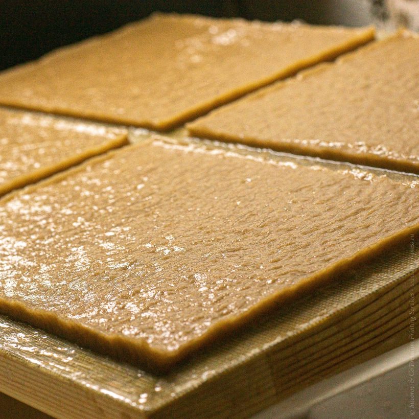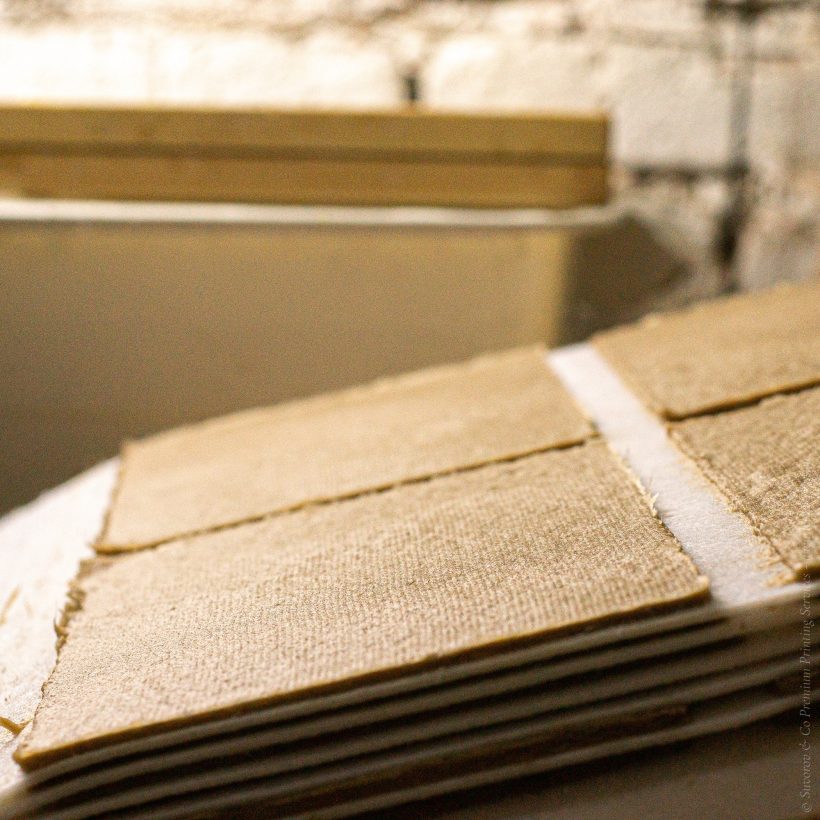 Мы отлили эту бумагу вручную для ваших печатных и каллиграфических работ. Карточки нежного крафтового цвета, размером 85х55 мм. С живым краем от декельной рамки. Каждая карточка уникальна.