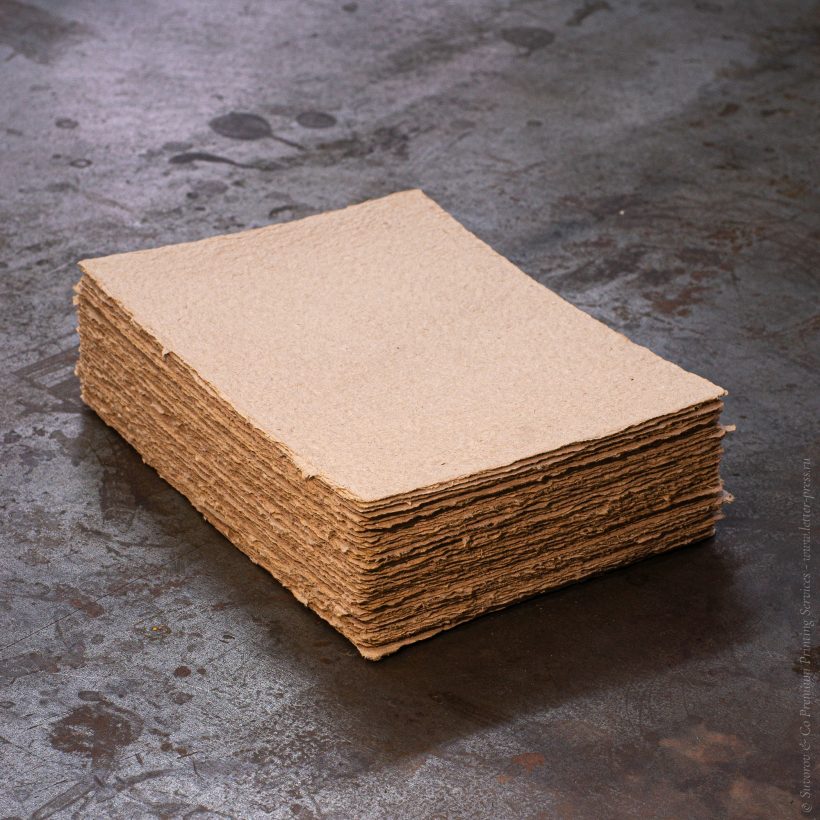 Мы отлили эту бумагу вручную для ваших печатных и каллиграфических работ. Карточки нежного крафтового цвета, размером 210х148 мм, (Формат А5) С живым краем от декельной рамки. Каждая карточка уникальна.